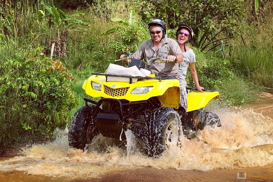For the first part, you will be riding on wide and easy tracks and see incredible viewpoints. We will arrive at the highest point of Koh Samui and enjoy a drink next to the Buddha overlooking Lamai Bay. Along the way, the tracks will be a bit more challenging to test your adventure side of you. A break to enjoy a nice Thai lunch. For the second part, you will ride through the jungle to reach the hidden waterfall where we can have a refreshing swim… 100% FUN !!! 100% OFFROAD