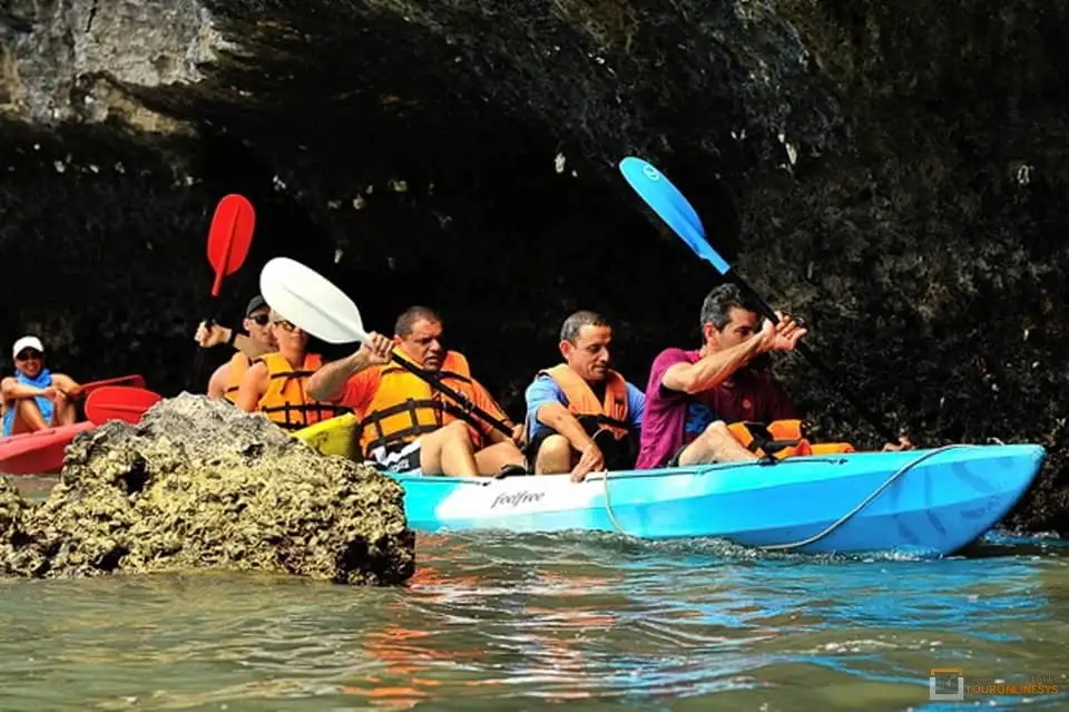 13:00     More kayaking/snorkeling at Wao Ta Lab Island or you may climb to the top of view Point, a distance of around 500 m. using a nature tail following a rope. Where the Island can be seen; or try another hike to the Lotus Cave with beautiful stalagmite & stalactite formations. for less energy, you may enjoy a swim, go snorkeling or relax on a beautiful beach.
