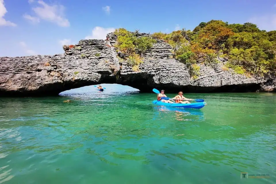 • Kayaking: Angthong National Marine Park is perfect for exploring by kayak.  Discovering hidden coves, limestone cliffs, and secluded beaches. This is a great way to get closer to nature and appreciate the park’s beauty.