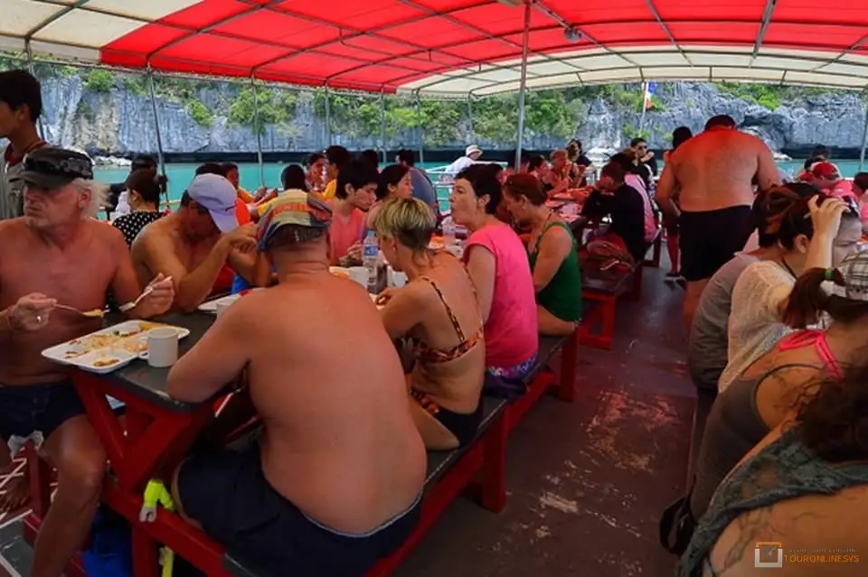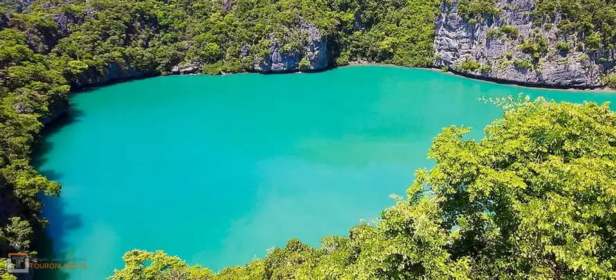 10:00    Arrive at Angthong National Marine Park and set over by longtail boat to Mae Koh Island. A short climb following steps and star rewards you with fantastic views of the saltwater lake known as Talay Nai the green lagoon surrounded by the sheer cliff is well worth a visit