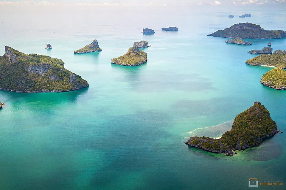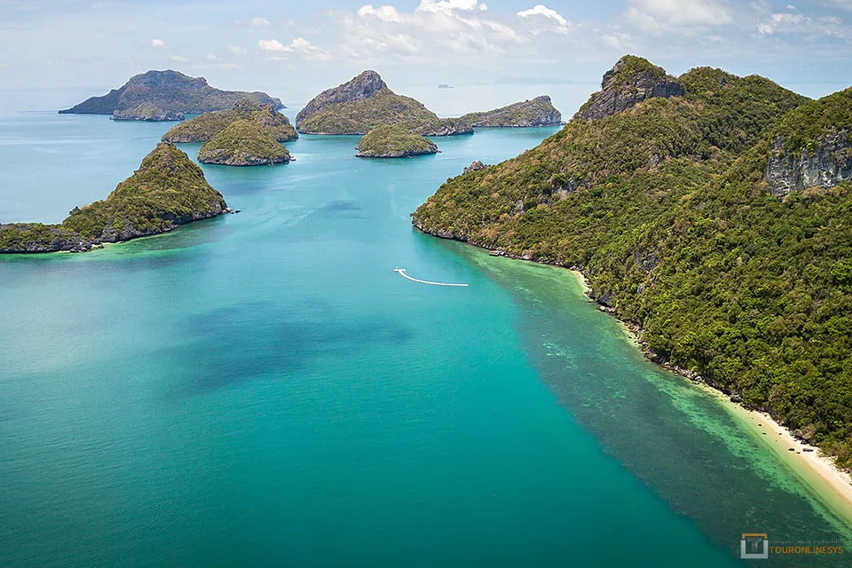 Angthong National Marine Park is a group of more than 40 small islands located in the Gulf of Thailand. It is known for its crystal clear waters, white sandy beaches, and diverse marine life.