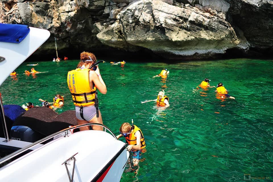Explore with Lomlahk Speed Boat Tour to Angthong National Marine Park hidden lagoons, white-sand beaches, and Emerald lagoon lake. Snorkeling among the shallow coral gardens makes this trip very popular and fascinating. Angthong National Marine Park translates as ‘golden bowl’, occupies almost 250 sq km and includes 50 sq km of limestone islands and cliffs which rise from the sea as dramatic and bizarre rock formations.