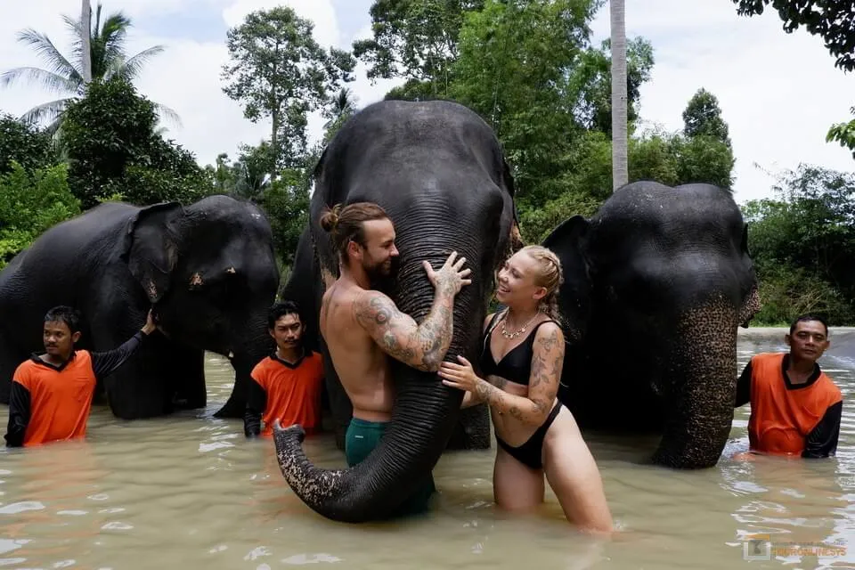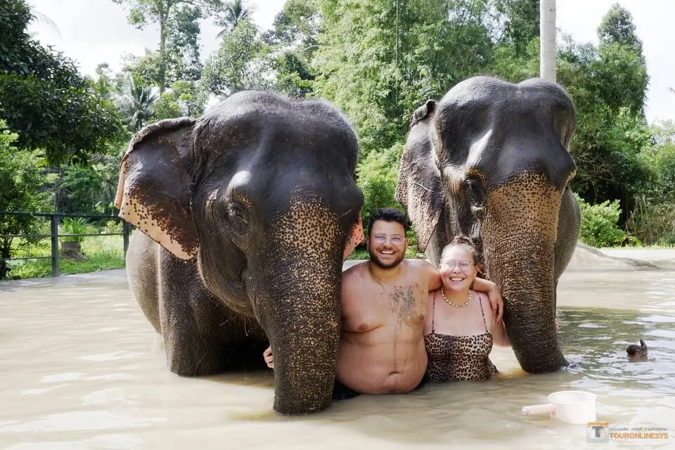Once the elephants are clean, you can take some final photos with them, and then it will be time to part ways with your new friend and change into some dry clothes.