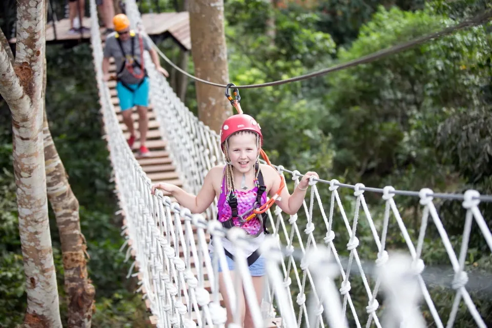 Samui Zipline Adventure Tour. Explore and Connect with Nature. Conquering our 9 – 16 platforms and experience flying above the lush jungle floor. Based deep inside the rainforest of Koh Samui, Thailand, surrounded by ancient trees and natural wonders. Our camp provides a safe, fun, and fast eco-adventure for everyone. Experience a thrilling journey that takes you soaring among the ancient trees, lush tropical wildlife, and breathtaking scenery. We invite you to experience 360-degree panoramic views of the jungle whilst conquering our 9 – 16 platforms and experience flying above the lush jungle floor! Zipline is a new kind of extreme adventure in Koh Samui. All of the platforms are made from wood and custom-designed to fit each tree. There are many options to choose from according to your needs.